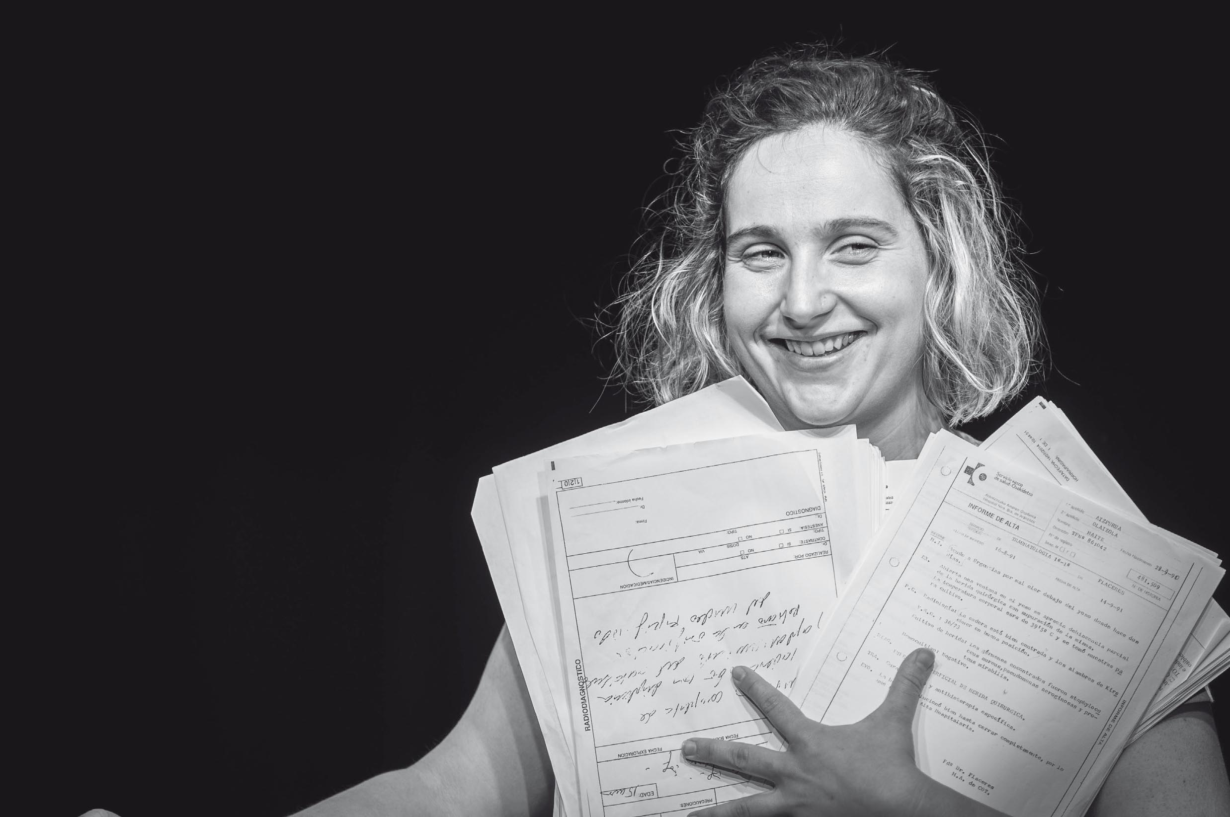 Antzezlan honetan ikertu nuen instituzio eta txosten medikoek zer eragin duten gorputz lisiatuen eta hauen pertzepzio pertsonal eta sozialaren gainean, betiere esperientzia biografikoetatik abiatuta. Hizkuntza medikoa hizkuntza jazarle eta urrutiko bezala agertzen da antzezlanean: teknizismoz eta debekuz betea, eta gazteleraz. Zentzu horretan, haurtzaro eta nerabezaroko bizipenei fidela izan naiz. Gaztelera nanaren bulegoko eta ospitaleetako hizkuntza zen niretzat. Ospitaleetako letreroak, buruz dakizkidanak oraindik; erizain laguntzaileen errietak berandu joaten ginelako gehienetan; zeladore jator hark ekartzen zuen nire gaztelerazko historial medikoa, lau urterekin “grueso” idatzita zuena gainean; amaren mimoak eta “quiero croasan” azkar esaten ikastea ospitaleko kafetegian. Niretzat traumatologoen kontsultak kapitalera ondo jantzita joatea eta barruko arropa zuriak estreinatzea ziren, gizon jakintsu baten kontsultara agertzeko. Pobreak baina txukunak, gazteleraz ulertu ez baina “portatu ondo” eta denari “bien” erantzuten ikasi.