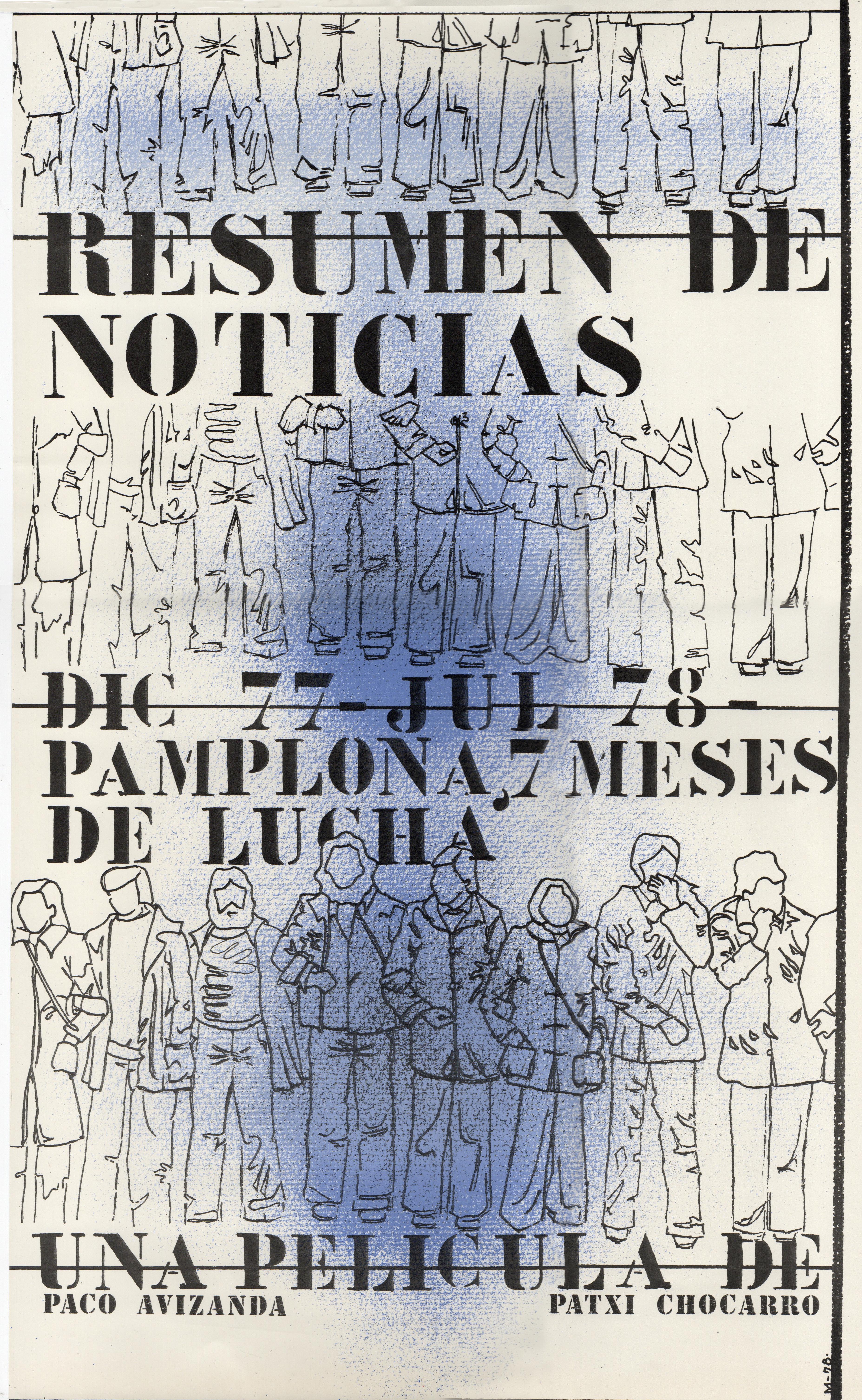 Material horrekin guztiarekin film bat egin genuen. Resumen de noticias deitu zen eta azpian jarri genuen: Dic – Jul 78 Pamplona, 7 meses de lucha. Hilabete eta erdiz proiektatu genuen egunero, Amaia kalean zegoen zine batean.