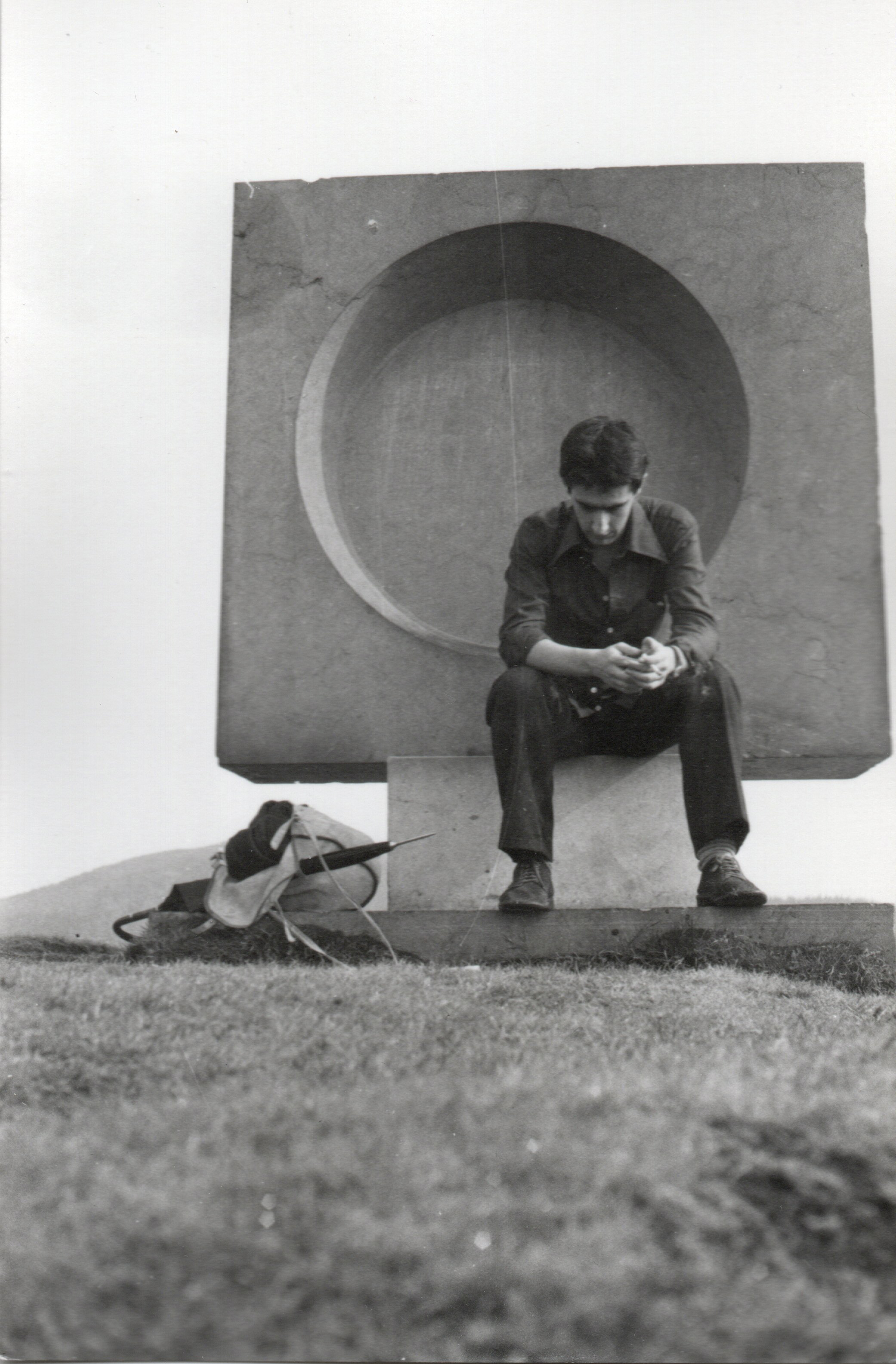 Eskultura hori Jose Gainzarekin eraman genuen. Kotxea haren aitarena zen, oso gazterik hil zitzaion, 1.430 bat zen, oso handia, marabilla bat. Haren aita industriako langilea zen. Garai hartan aita gazte hil zitzaienek izaten zuten kotxea. Baina tira, ez dut egiaztatu nahi ze koloretakoa zen, agian ez zen zehazki modelo hori. Ze axola du, joder. Hor daude argazkiak, ez?