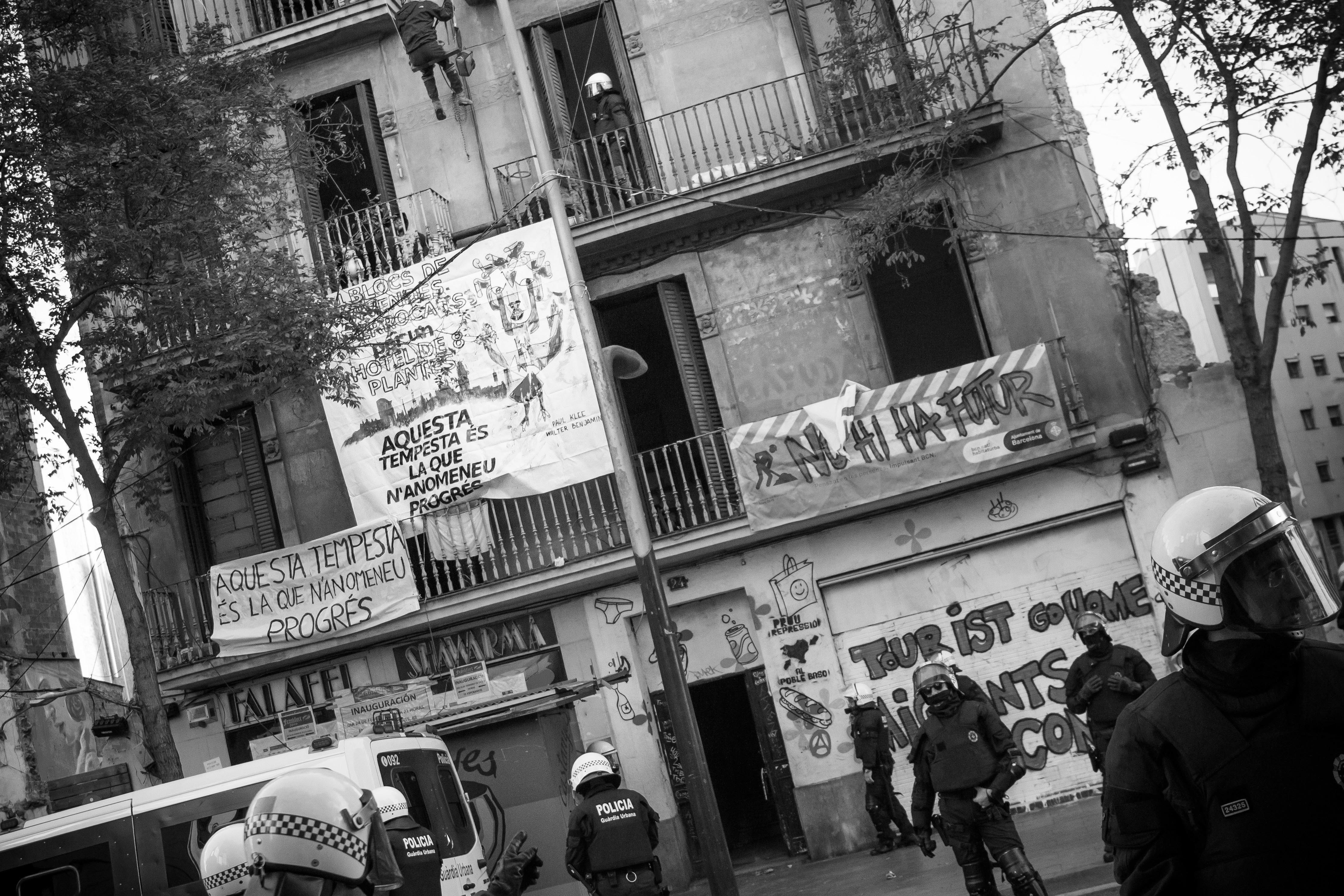 Gure genealogiaren elementu nabarmenetako bat izan da inprimatutako testuen trukea. Agian horregatik, 2016an polizia Bartzelonako Santseko errepideko azken bloke okupatua eraistera bertaratu zenean, hiru lagun kateekin elkarri lotuta eta balkoietatik eskegita zeuden bitartean, turistifikazioaren aurka zabaldu ziren lemez gain (Aturem la gentrificació dels barris, Amb més turisme menys veines, Fem front al turisme), Walter Benjaminen maximarekin ere topo egin zuten: