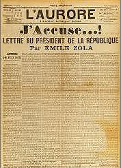 Salatzen dut Billot jenerala Dreyfusen errugabetasunaren froga zehatzak esku artean edukita, hauek baztertzeagatik, eta horrela, asmo politikoz eta Agintaritza Gorena Babeste aldera, gizateriaren eta justiziaren kontrako krimenak burutu dituelako.